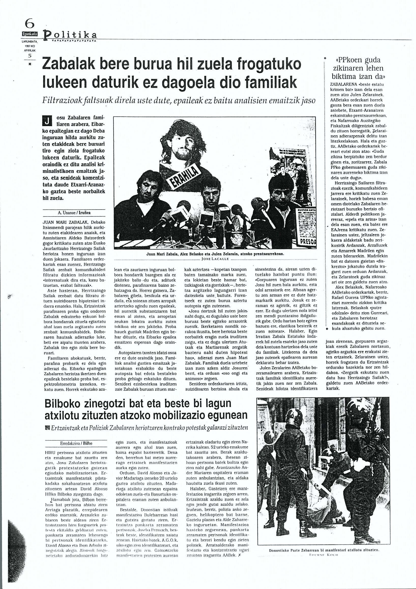 Documentación relacionada con Josu Zabal Salegi "Basajaun" 10. urteurrena